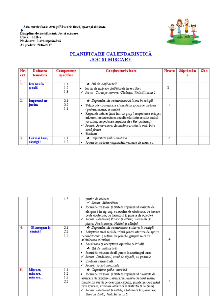 Unitatea tematic competene detalii de coninut perioada de crt specifice timp semestrul i i. Joc si miscare clasa a3a. Conţinuturile învăţării sunt structurate, în mod progresiv, pe ani de studiu şi reprezintă baza de operare pentru formarea competenţelor.